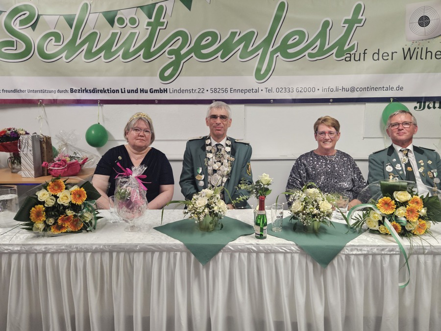 Nach einem festlichen Umzug ist das alte Königspaar, Norbert und Heike Lange, in die Schützenhalle des Vereins geführt worden. Nachdem im Vorfeld der Krönungszeremonie die Pfänderschützen (Luise Thiele, Nicole Lange, Dietmar Rittinghaus, Dieter Lange, Julia Ritter, Yvonne Mell, Martin Hoser) und der Kindermaikönig (Hadrian Mell) geehrt worden sind, hat Gunter Ritter die Insignien des Königs der Wil